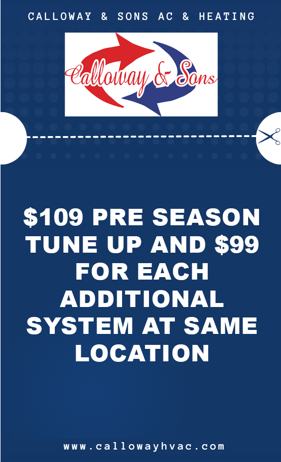 At Calloway & Son’s we believe everyone deserves quality heating and cooling services at affordable prices. We understand the strain home maintenance can put on your budget. That is why we strive to offer a range of budget-friendly specials that can help you save on the products & services you need most. Our specials will help you trim your expenses on essential visits when things are amuck. Check out our coupons when you are booking a service call to find out how you can save on repairs and replacements.